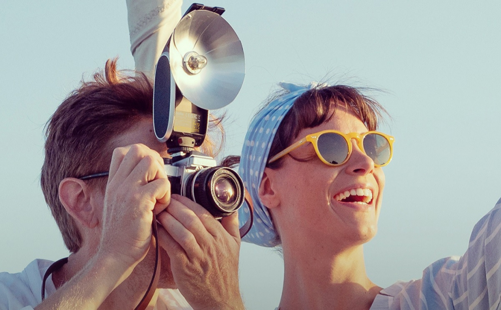 Sperimentare il classico modo di fotografare con il riflettore argentato a ventaglio per modellare la luce e il bulbo del flash, unisce una forma vintage con la nuova tecnologia.